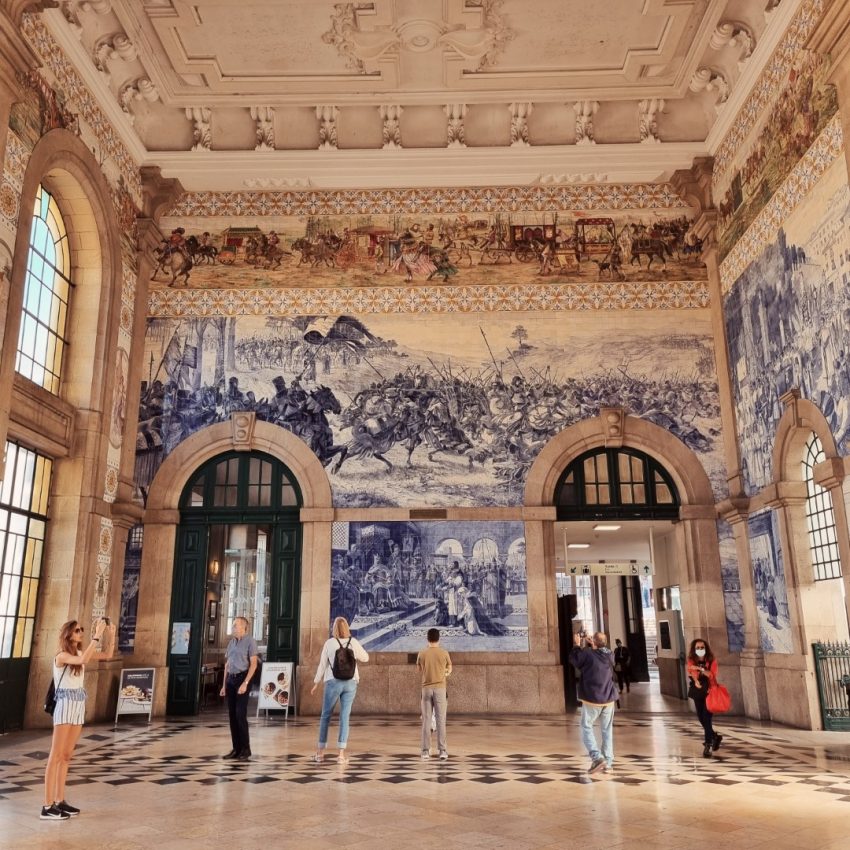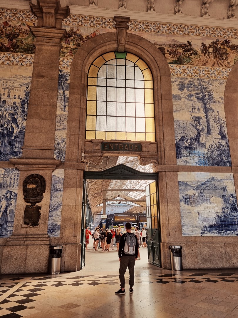 Dworzec São Bento zdobi ponad 20 00 płytek. Tworzą one przepiękne sceny z historii Portugalii. Po lewej stronie od głównego wejścia ścianę zdobi bitwa pod Valdevez oraz wizyta u króla Kastylii Alfonso VII. Po drugiej stronie podziwiać możemy zdobycie Ceuty oraz wkroczenie króla Portugalii do Porto w 1387 roku. Pozostałe kafelki prezentują winobranie, rzekę Duoro i sceny z życia mieszkańców.